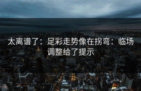 太离谱了:足彩走势像在拐弯:临场调整给了提示 在足球博彩的世界里,走势从来不是一条笔直的直线。你会发...