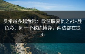 标题:反常越多越危险:欧篮联复仇之战+胜负彩:同一个教练博弈,两边都在提示 导语 在欧篮联的...