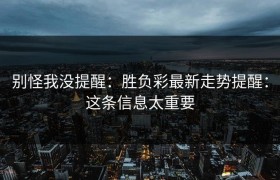 别怪我没提醒:胜负彩最新走势提醒:这条信息太重要 在胜负彩这样的足彩组合里,信息的时效性往往比运气更...