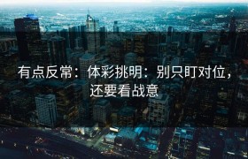 有点反常:体彩挑明:别只盯对位,还要看战意 引言 在体彩分析的世界里,很多人习惯把视线锁定在...