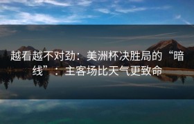 越看越不对劲:美洲杯决胜局的“暗线”:主客场比天气更致命 在每一届美洲杯决胜局上,镜头聚焦的不仅是两...